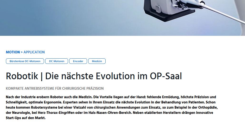 Was Roboter mit der Medizin und dem OP-Saal insbesondere zu tun haben, das habe ich in einerm Anwenderbericht für Faulhaber aufgeschrieben.
