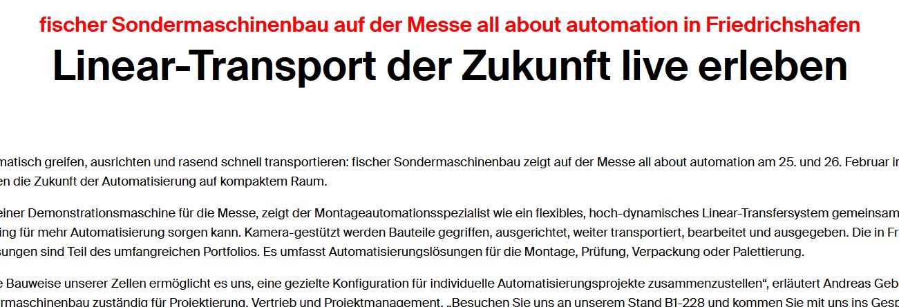 Im Vorfeld der Messe all about automation in Friedrichshafen habe ich eine Pressemitteilung geschrieben und über die Zukunft der Automatisierung geschrieben.