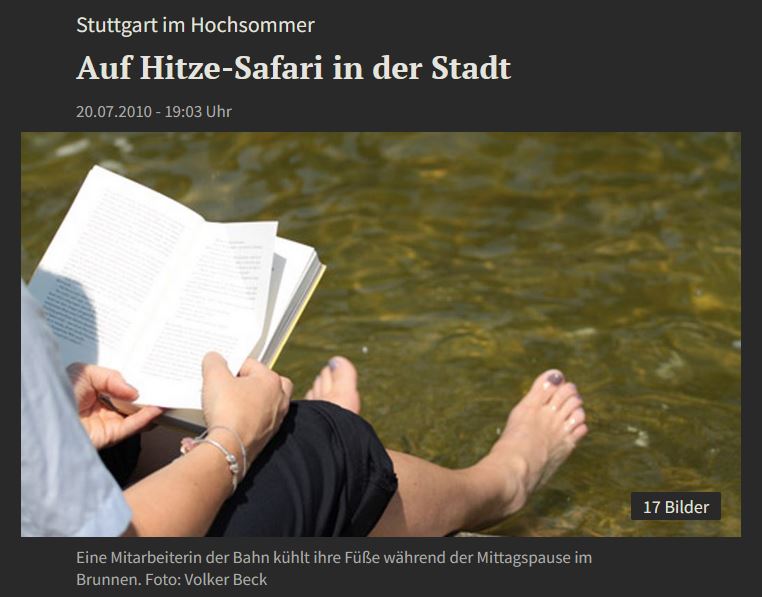 Für die Stuttgarter Zeitung habe ich mich für eine Bilderstrecke im Hitzesommer 2010 auf den Weg gemacht zu sehen, wie die Menschen in Stuttgart mit der großen Hitze umgehen.